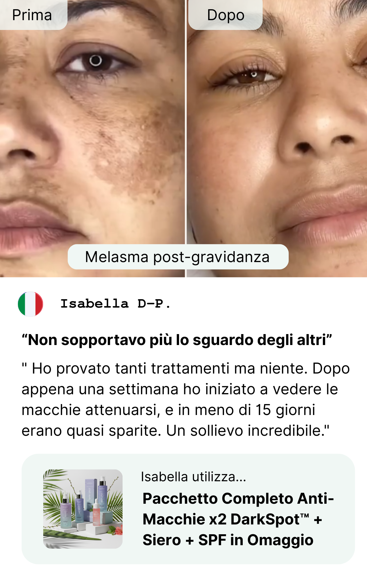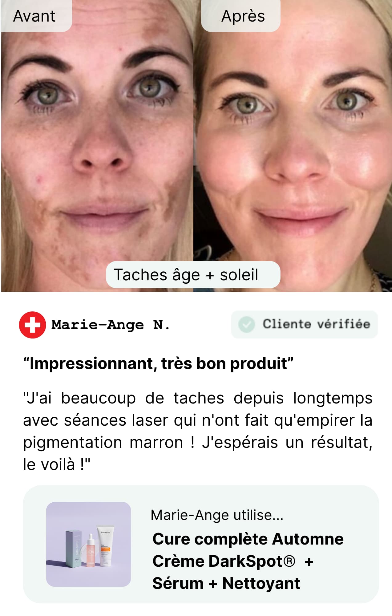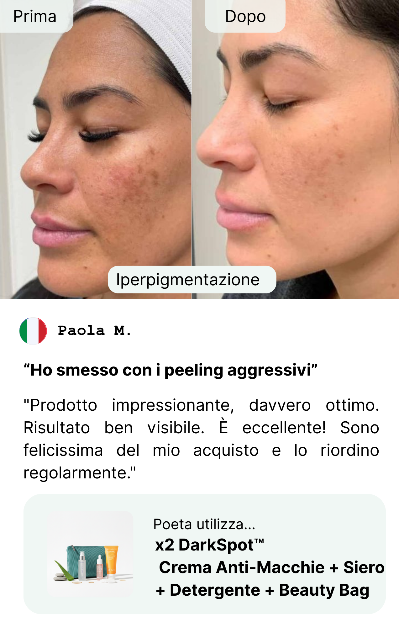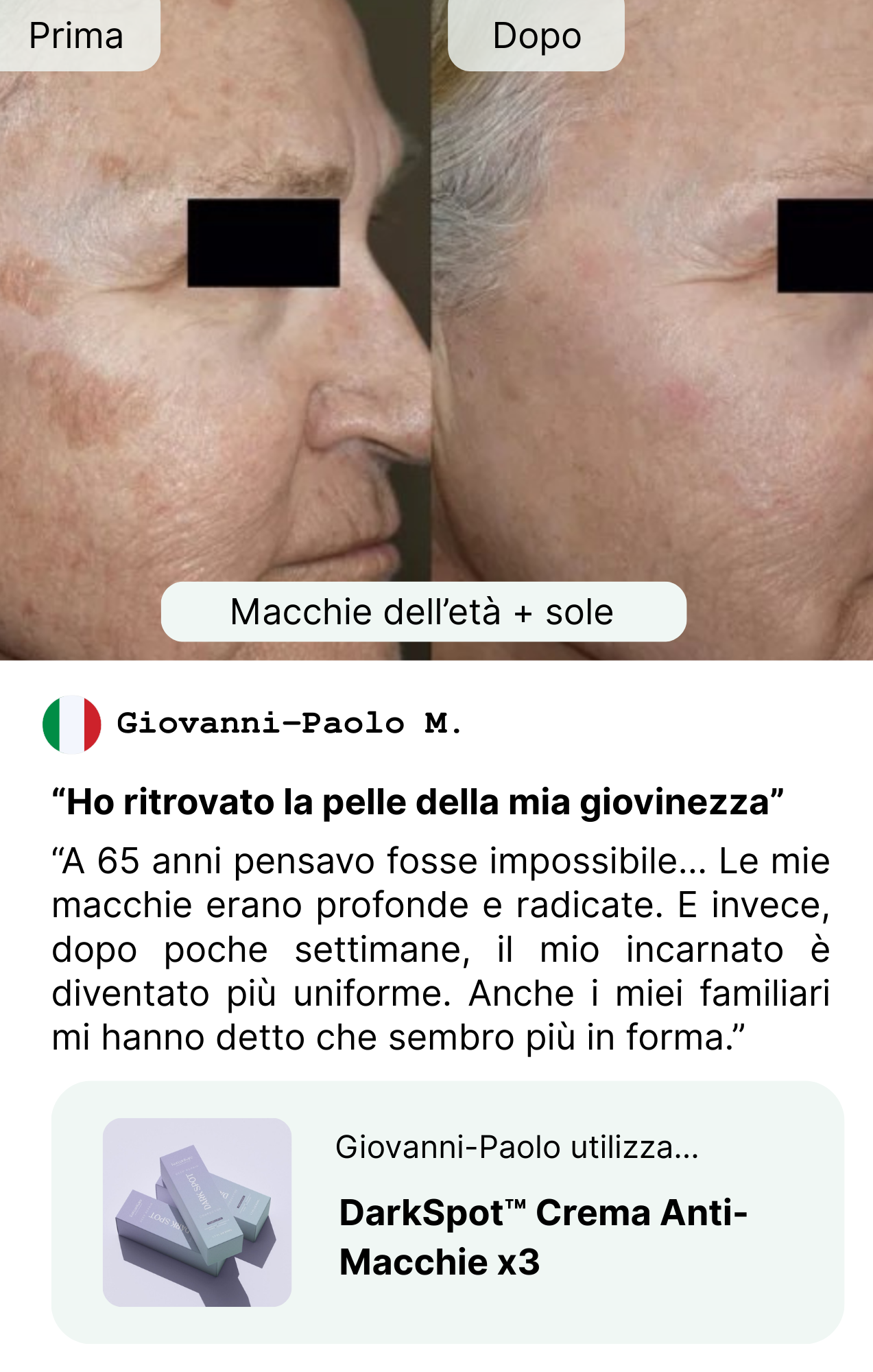 “Posso affermare che la sinergia di attivi di DarkSpot™ è una delle più complete che abbia mai testato contro le macchie pigmentarie. Agisce alla fonte della melanina, proprio dove molte creme occidentali falliscono. Su 8 pazienti su 10, le macchie iniziano ad attenuarsi visibilmente già dai primi giorni. La raccomando senza esitazione.”